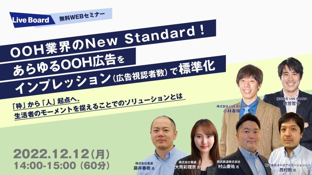 株式会社 LIVE BOARD(本社:東京都渋谷区、代表取締役社長 櫻井 順、以下LIVE BOARD)は、2022年12月12日(月)14:00~15:00にて、LIVE BOARD主催WEBセミナーを開催します。