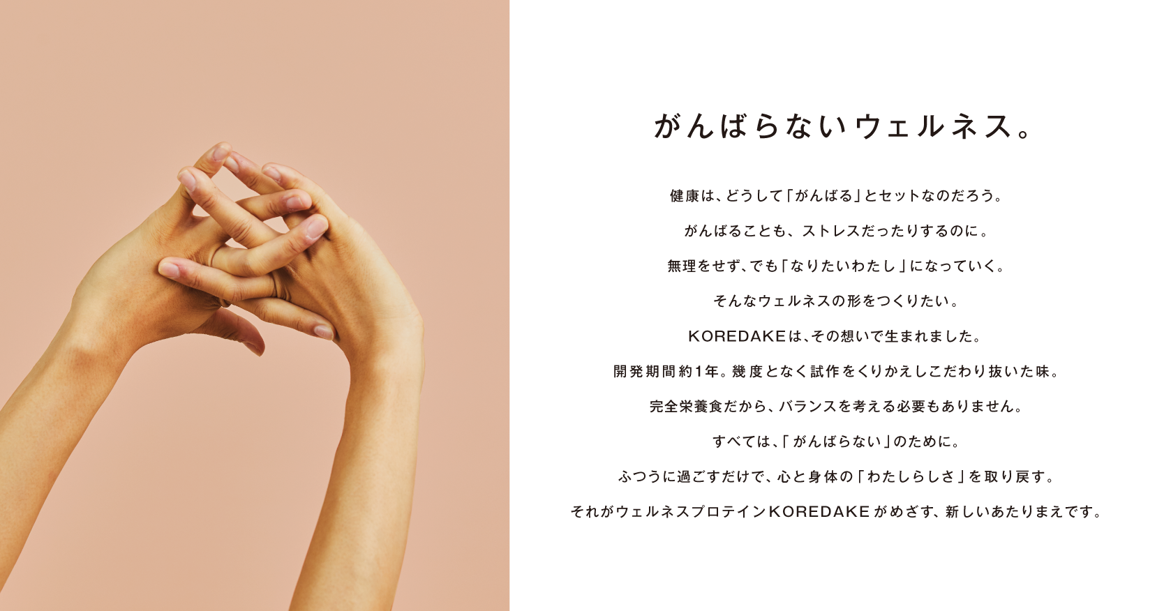 関連記事:「なぜ“ウェルネスプロテイン”だったのか。『KOREDAKE』のこれまでと、これから。」