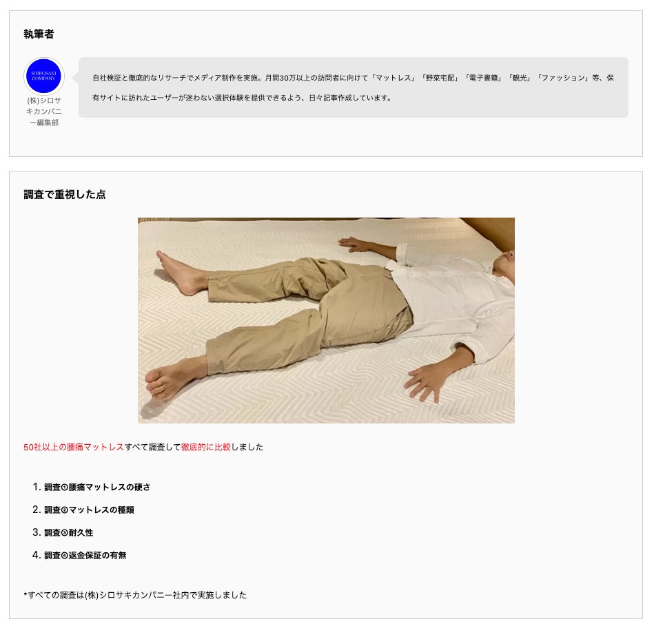 今回リニューアルした内容は、腰痛マットレス一覧・執筆者及び調査で重視した点の追記です。
