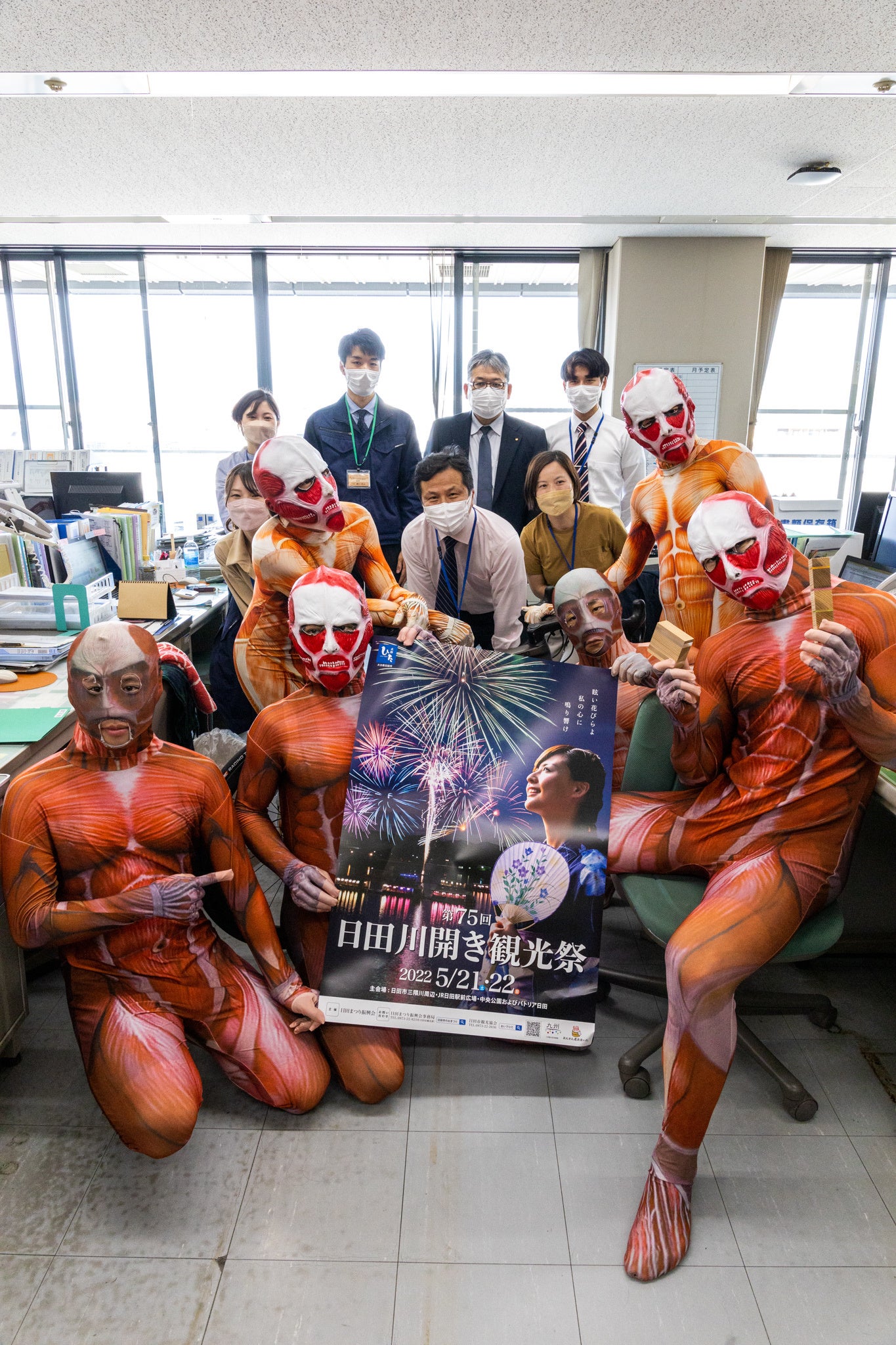 5月22日に開催される第75回 日田市川開き観光祭「水郷日田どんたくカーニバル」にて筋肉スーツを着用した100人のサイクリストでパレードを実施します。お申し込みは4月28日から5月15日までの先着順となります。日田市以外にお住まいの方でもご参加いただけます。