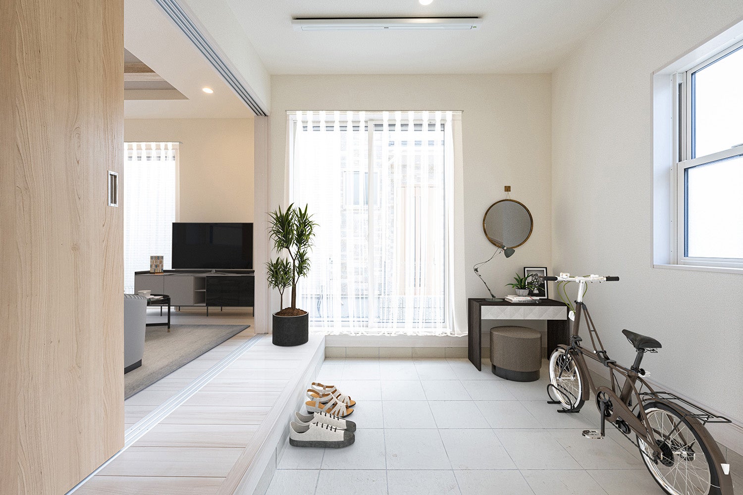 リビングと繋がる土間空間「マルチエントランス ikoi」を分譲住宅ブルーミングガーデンに採用