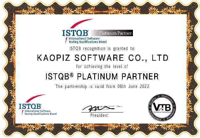 ISTQBは世界で最も信用のあるソフトウェアテストに関する国際的な資格認定機関の一つです。この度、ISTQBパートナープログラムにおいて「ゴールドパートナー」として3年連続で認定されたカオピーズは品質技術およびテスト技術の向上に尽力している点が評価され、「プラチナパートナー」に昇格しました。