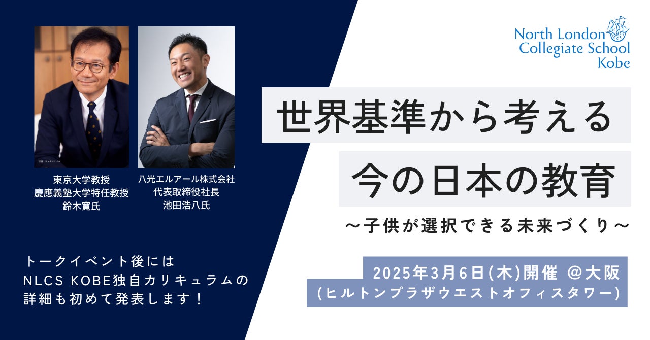 2025年8月に神戸に開校する「North London Collegiate School Kobe(NLCS Kobe /ノースロンドン神戸)」は、鈴木寛さんをゲストに迎えたトークイベント「世界基準から考える今の日本の教育〜子供が選択できる未来づくり〜」を2025年3月6日(木)にヒルトンプラザウエストオフィスタワー8階 (大阪市北区)︎にて開催します。