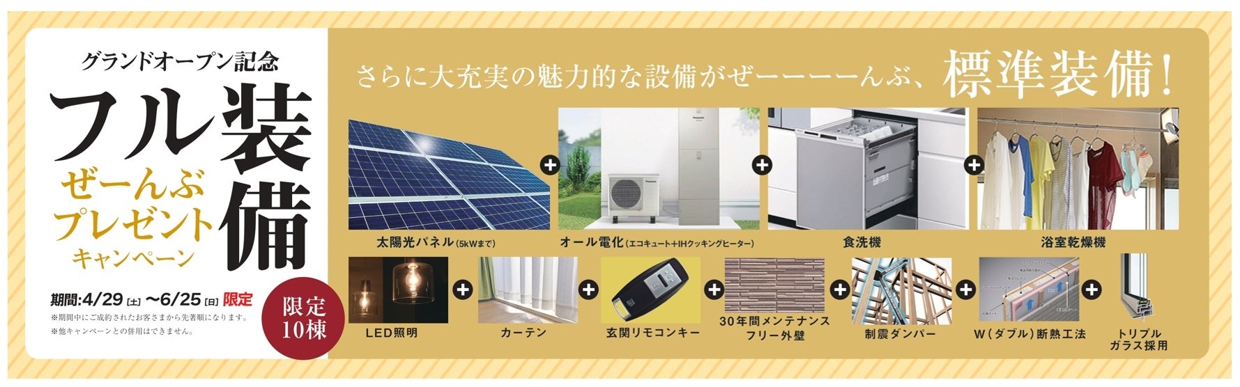 魅力的な設備が全て「標準装備」となるキャンペーンです。