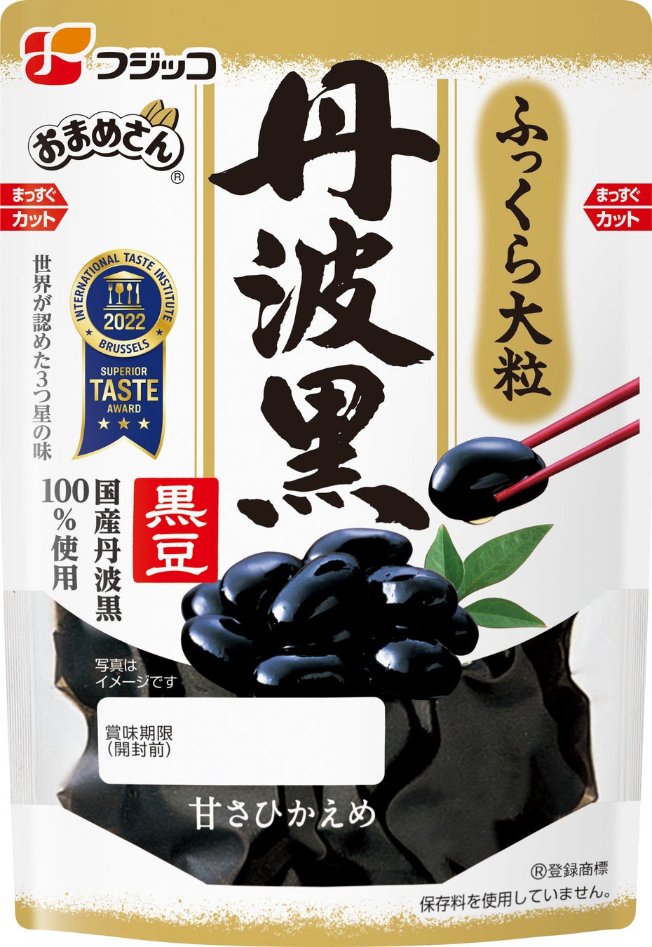 黒豆の中でも、とりわけ粒が大きく、ふっくらと柔らかく、食味が良いと言われる丹波黒黒豆。この黒豆を使用したフジッコの「おまめさん🄬 丹波黒黒豆」は発売から40年を超えるロングセラー商品で、主におせち料理の一品として親しまれています。
