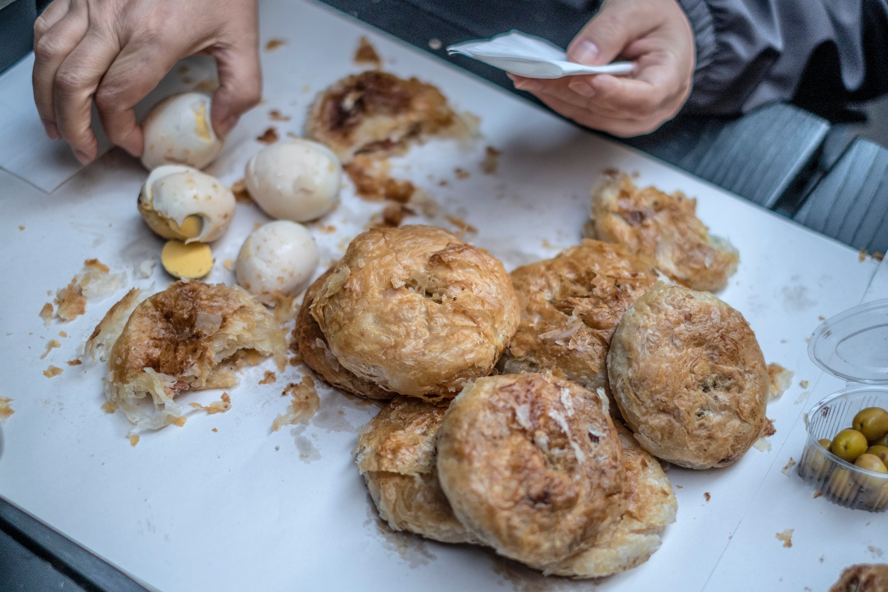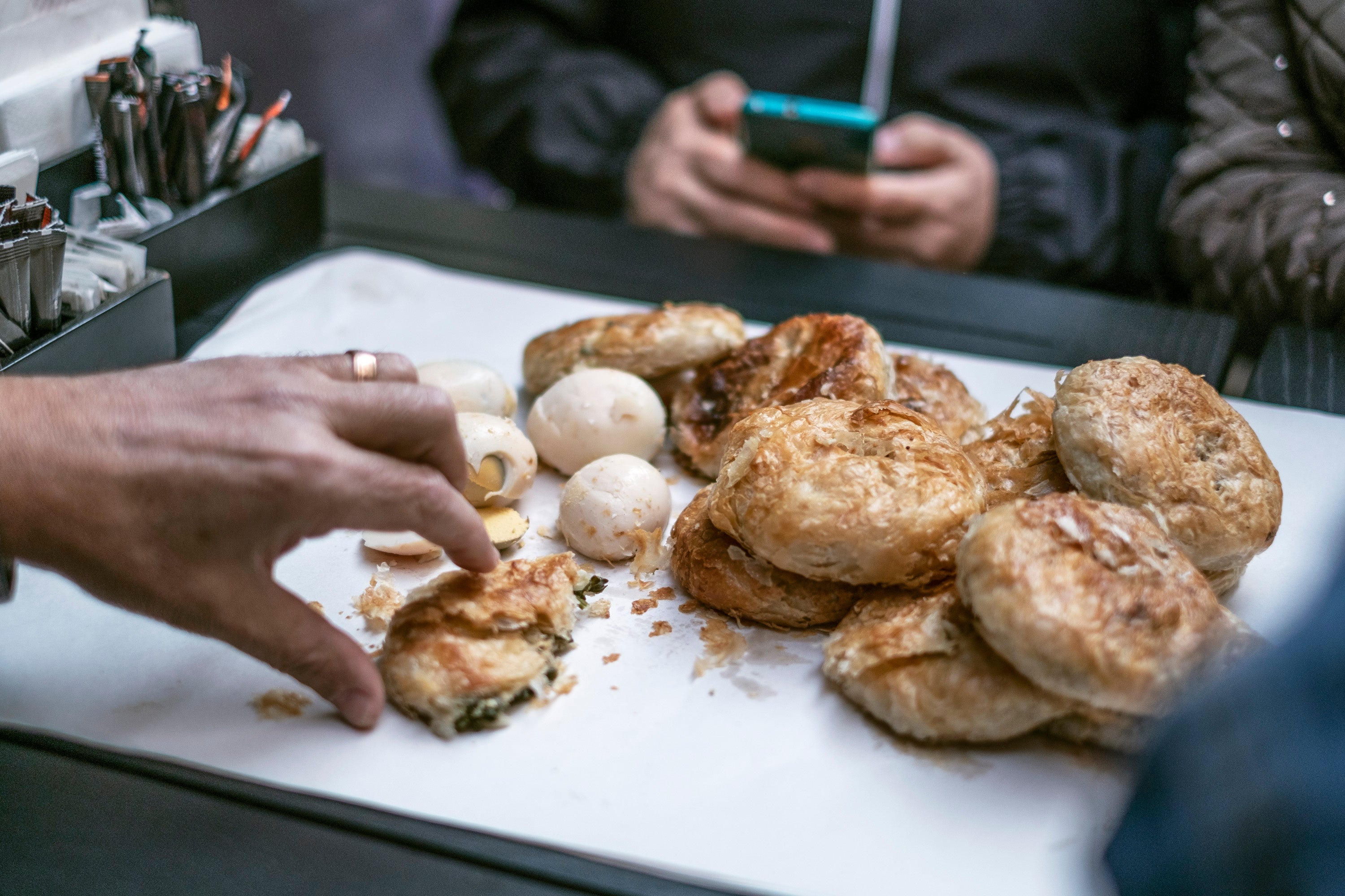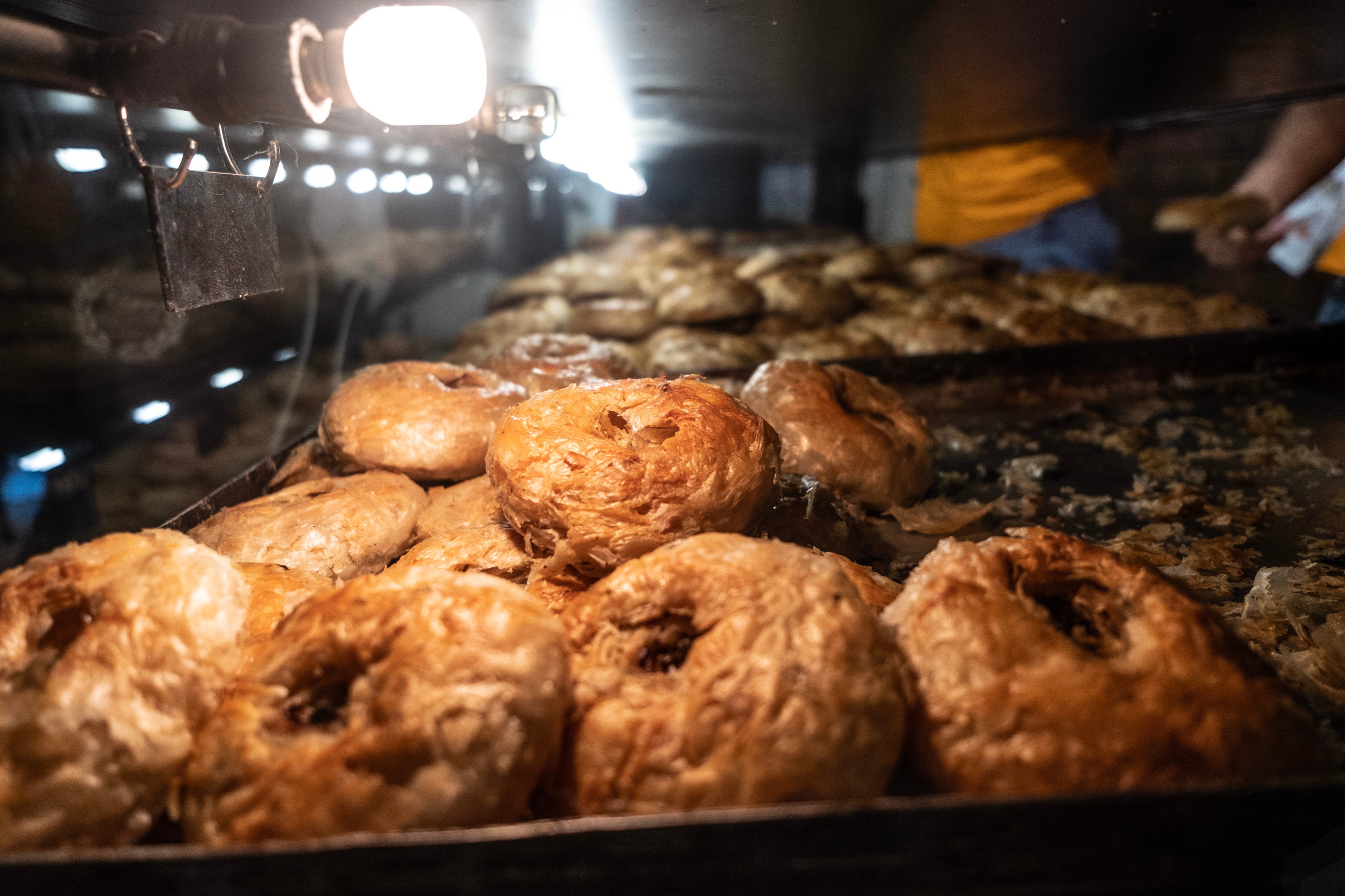 熟練ボヨズ職人の手でミルフィーユのように薄いパンの生地を重ね、中に野菜やチーズ、チョコレートなどの具材が入ったパン。