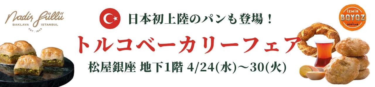 「パンの消費量世界一」と言われているトルコより、日本では未だ珍しいトルコのペイストリーを紹介する「トルコベーカリーフェア」を2024/4/24(水)~30(火)の期間限定で、東京・松屋銀座 地下一階 GINZAスイートで開催します。