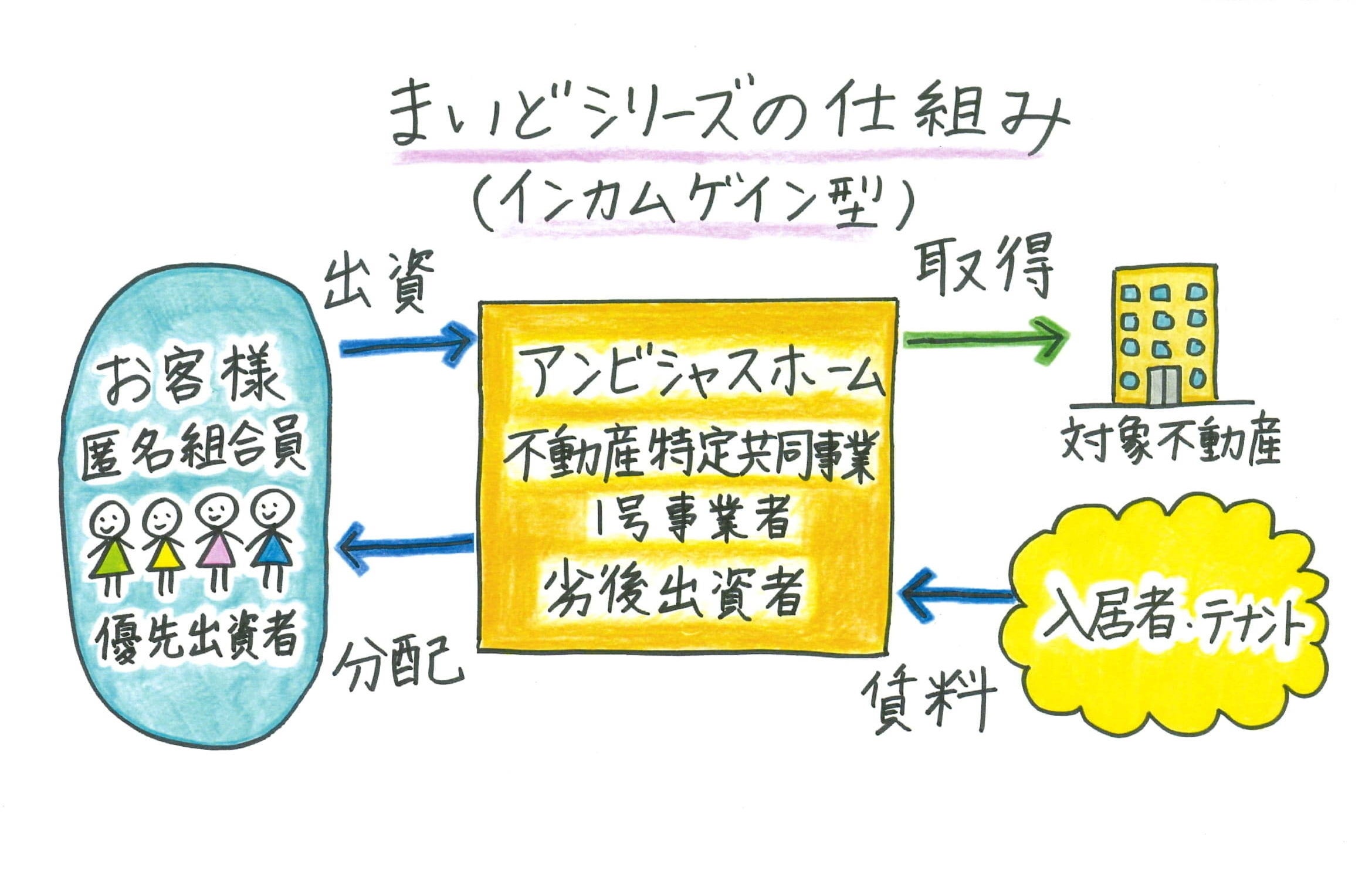 今回の『まいど6号』も賃貸利益を原資に出資割合に応じて利益を還元するインカムゲイン型。