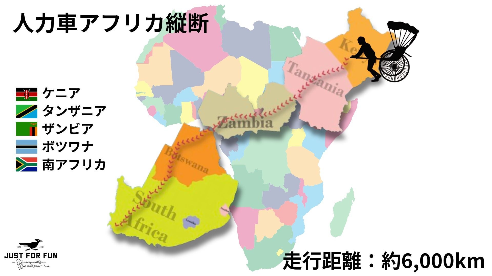 2023年にアメリカ横断を終えたあと、挑戦したのはアフリカ縦断。24年7月1日にケニア・ナイロビからスタートし、南アフリカ・ケープタウンまでの6000キロを人力車を引きながら踏破、1月26日にゴールする予定です。多数のトラブルに見舞われながらも、ゴールに向かって進み続ける姿は、SNSやYouTubeを通して多くの人に感動を与えています。