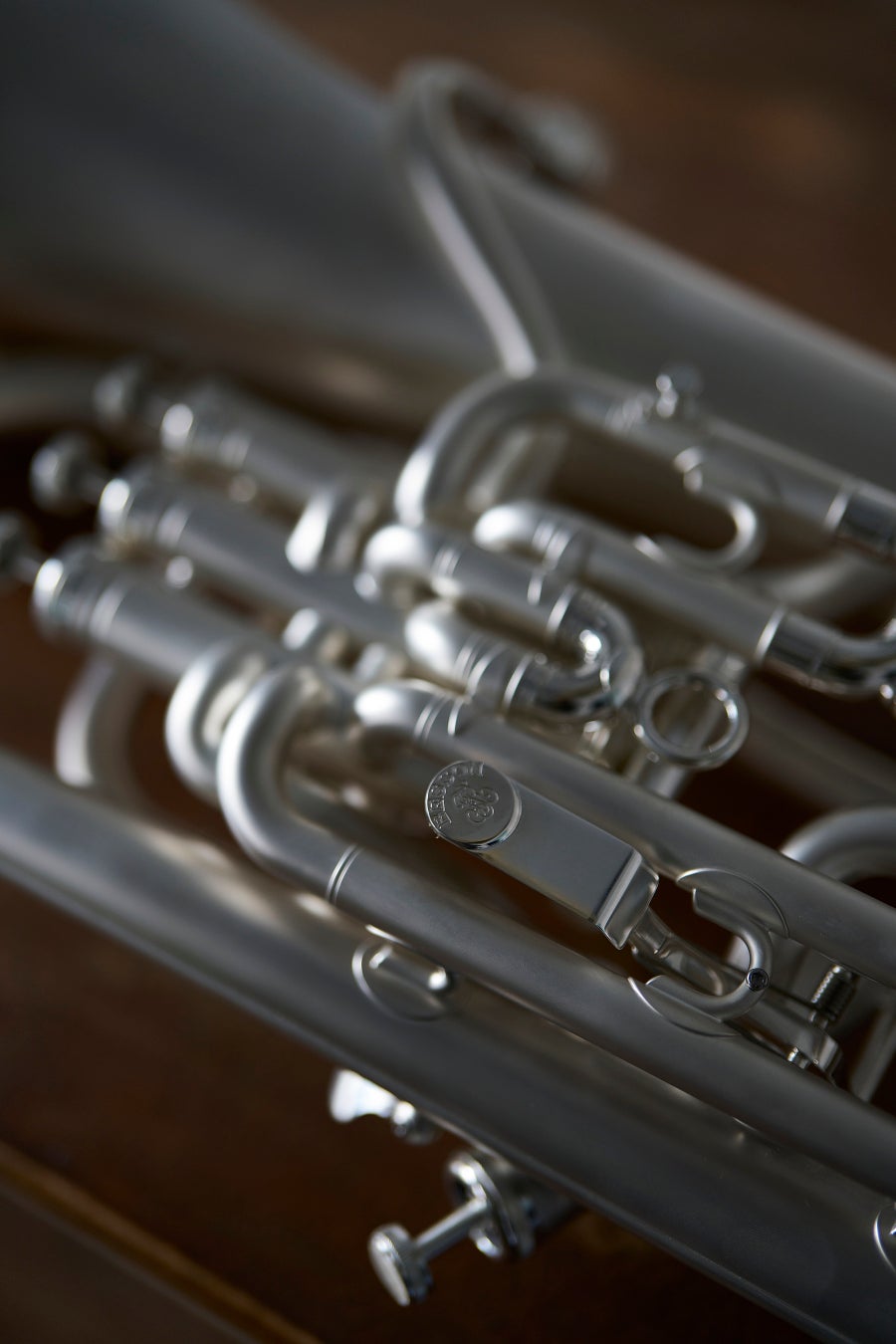 本モデル最大の特徴であるサテン仕上げは、三木楽器200周年記念の特別オーダーにより実現した希少な仕様。イギリスの古き良き時代のベッソンユーフォニアムを彷彿とさせるサテン仕上げの美しい風合いに加え、"ソヴリン"が持つ豊かで広がりのある音に、より多くの倍音を含み、多彩な表現力を実現します。
