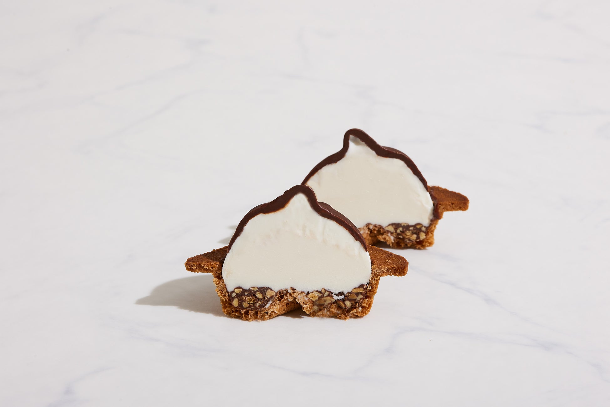 アーモンドプードルと北海道産のバターをふんだんに使用したリッチなプレスドアーモンドクッキーが、爽やかなソフトクリームの味を引き立てます。「挟み焼き」という製法でワンダーの頭文字である“W”の形に焼きあげています。