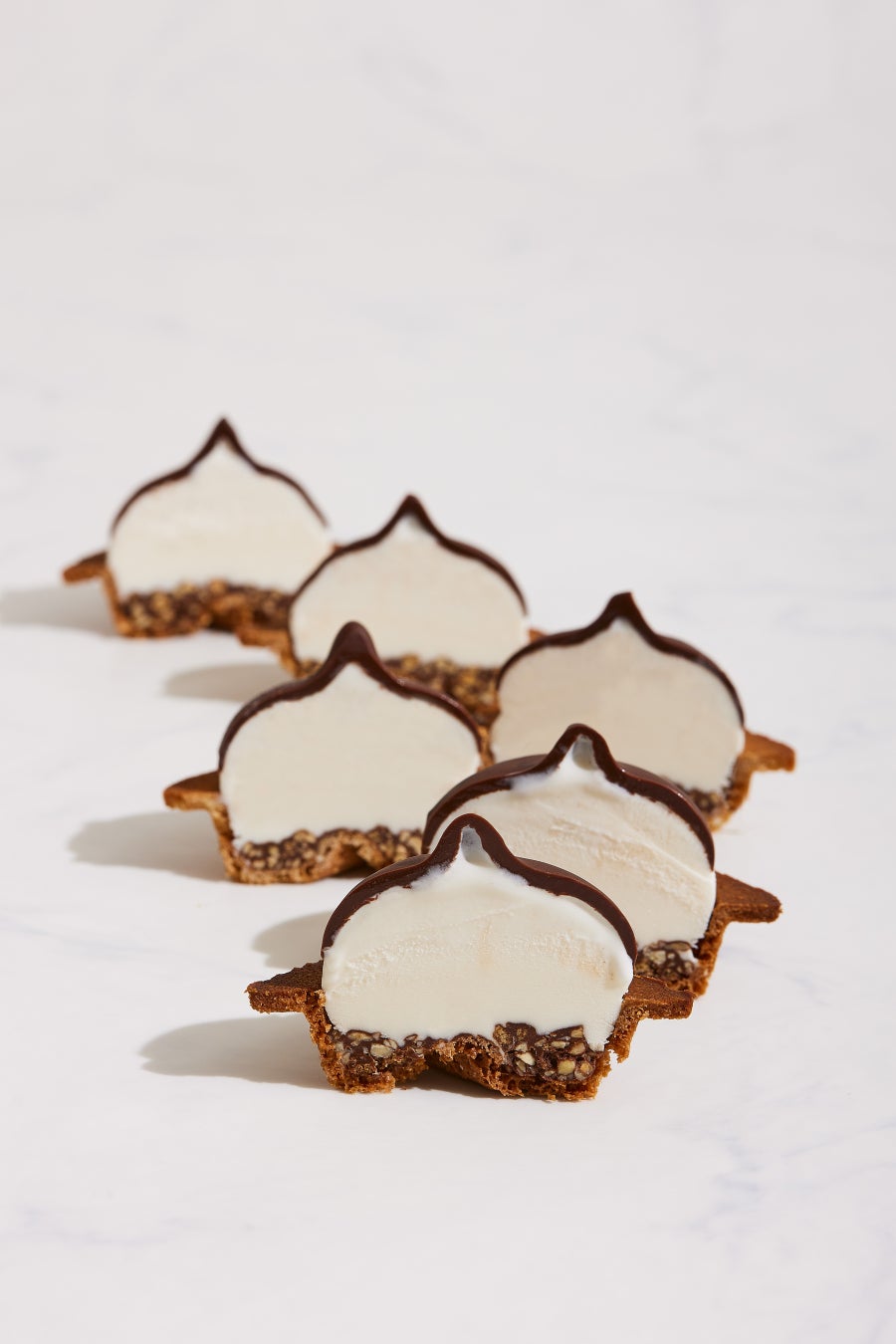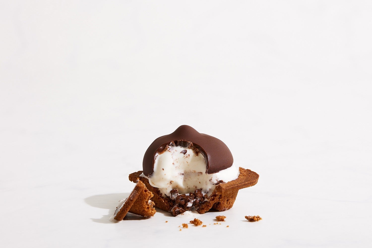 夏の爽やかな放牧牛乳からできたソフトクリームをチョコレートとナッツで閉じ込めました。チョコナッツのゴロゴロザクザクとした食感が噛むごとに楽しさをプラスしています。