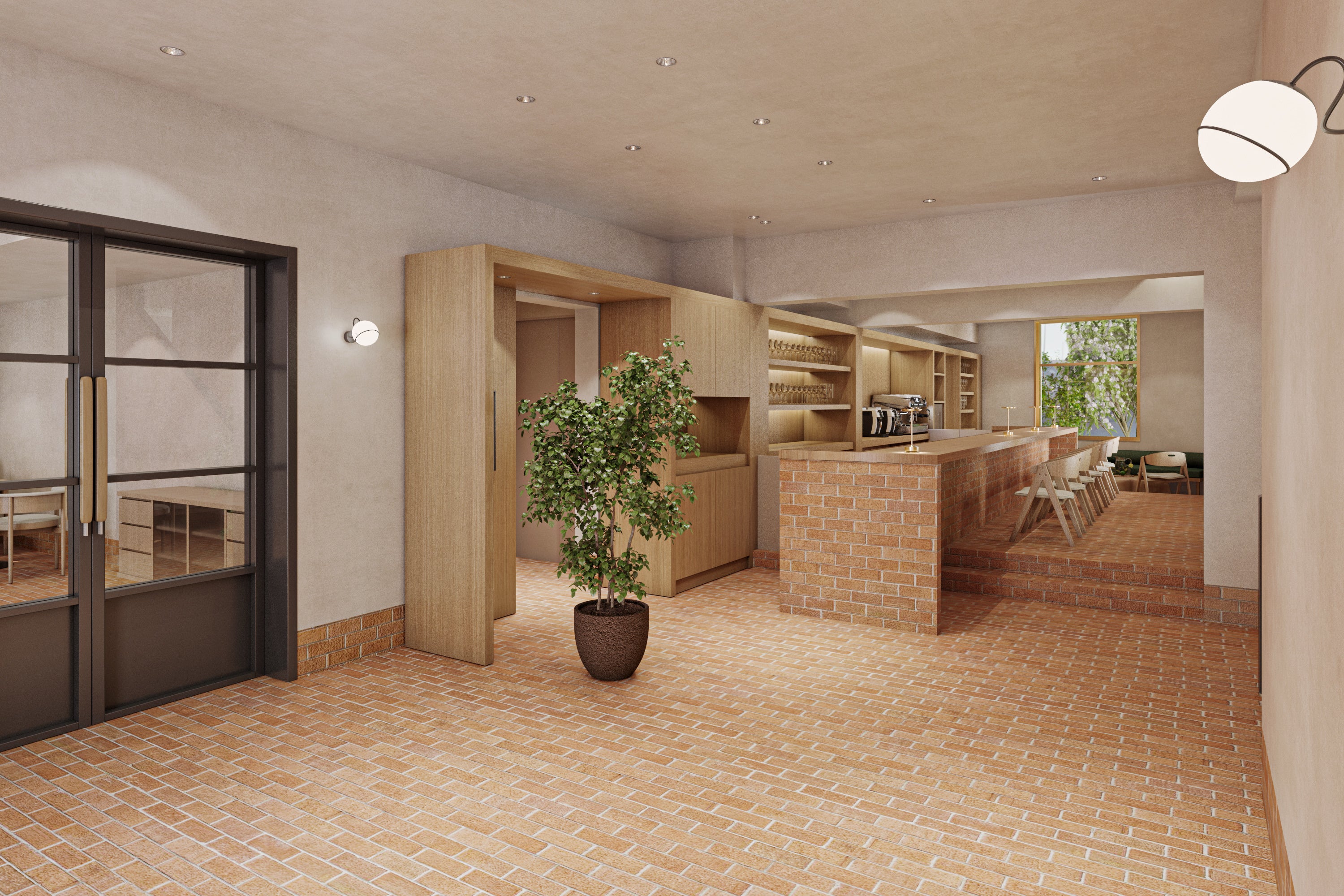 宿泊客のみが利用できるバーカウンターを設けています。コーヒー、紅茶、アルコール各種のほか、ガーデンをイメージしたボタニカルスピリッツなどを提供予定です。