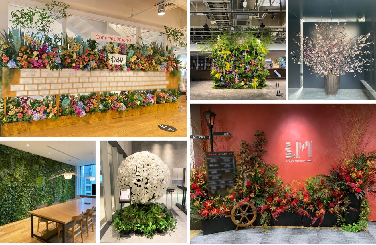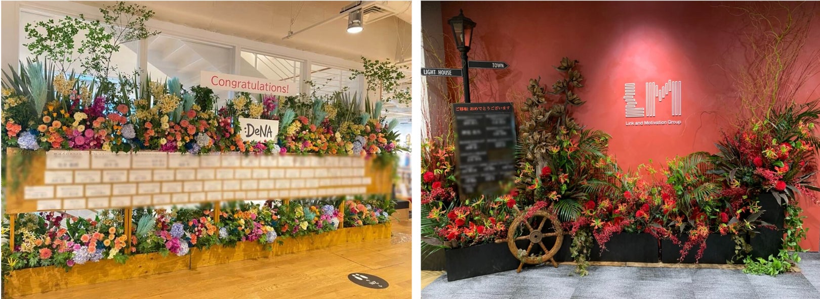オフィス移転や周年記念、就任祝いで贈られるお祝い花は、「お花の受取、陳列業務の負荷・設置スペースの不足」「定番の花を選びがちで印象に残りづらい」 といった課題がありました。