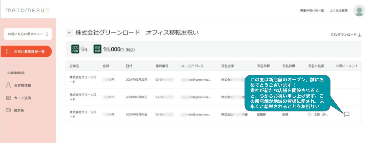 受け取ったメッセージはマイページ上で閲覧可能。社内でも共有しやすくなり、お祝いの気持ちがより多くの人に伝わります。社員同士の会話が生まれ、企業のエンゲージメント向上やブランディングにもつながります。