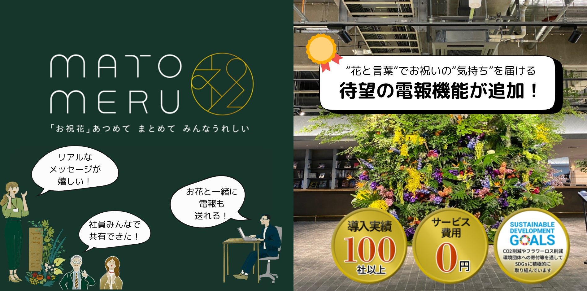 法人向けお祝い花おまとめサービス『matomeru』(運営:株式会社グリーンロード、本社:東京都台東区、代表取締役:高原 良午)に、新たに「電報機能」が加わりました。