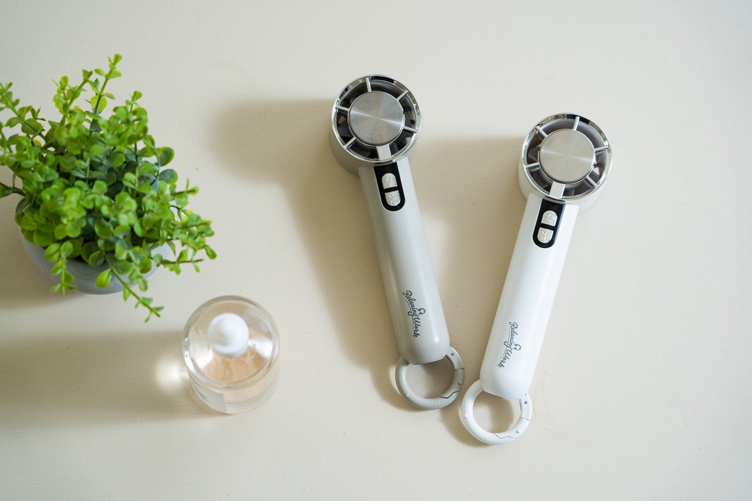 「冷却プレートハンディファン」は、直接肌を冷やすことができる冷却プレートを搭載しており暑さ対策に便利。コンパクトでパワフルな風量のミニ扇風機としても使え、最大10時間稼働バッテリーを搭載しています。