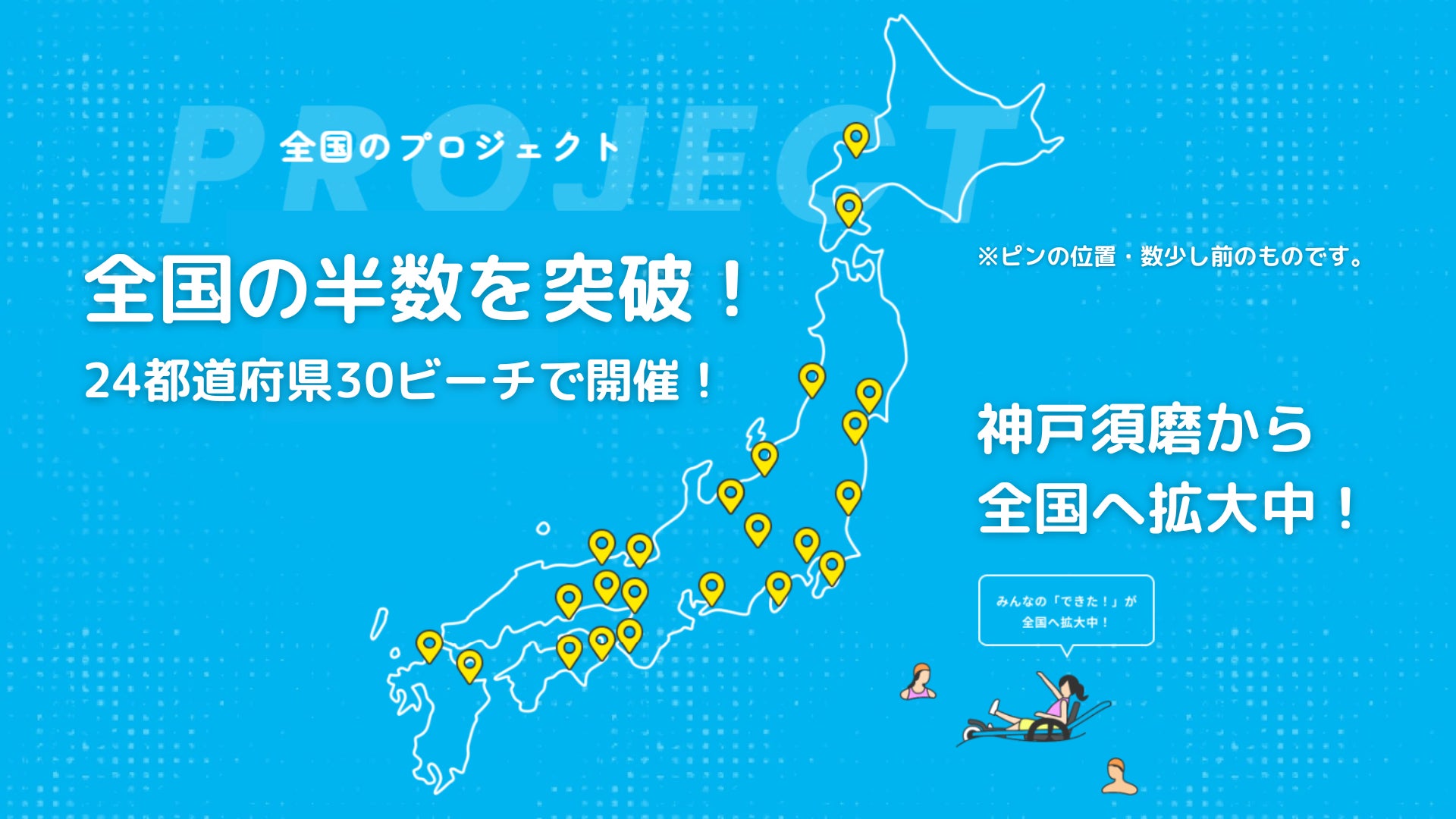 ◼︎ 出張したビーチは24道府県、30ビーチに。全国の半数を突破。