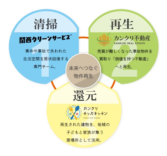 この想いを軸に、3つのブランドが連携し、事故物件の再生から地域支援まで一貫して取り組んでいます。
