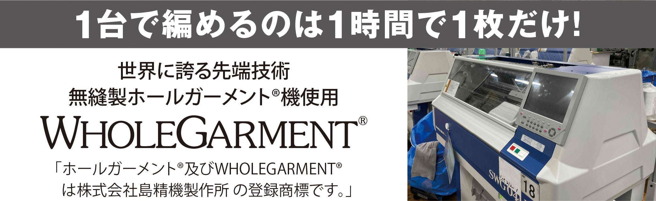 ①1台で編めるのは1時間で1枚だけ。世界に誇る先端技術の無縫製ホールガーメント®機を使用