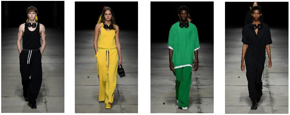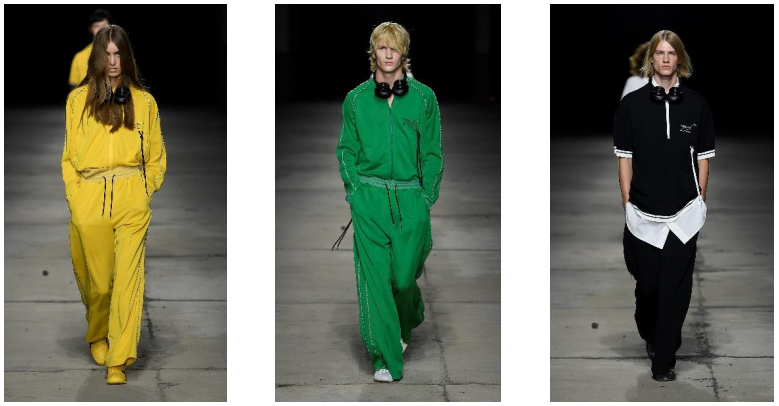 ニットウエアは非常にやわらかく高級感を醸し、形はワイドシルエットとなっています。ブランドのアイコニックなトラックスーツのパンツは、ワイドカーブなウルトラバギーバージョンで登場します。一方で、都会的に洗練された雰囲気は損なわれておらず、隠れているファスナーによって着丈を調整できる薄手のサファリ調のナイロンドレス、大きなパッチポケットによってシルエットを新たに作り出したハイキングパンツのように短いミニスカートなど、所々にサプライズとして都会的なアプローチが散りばめられています。