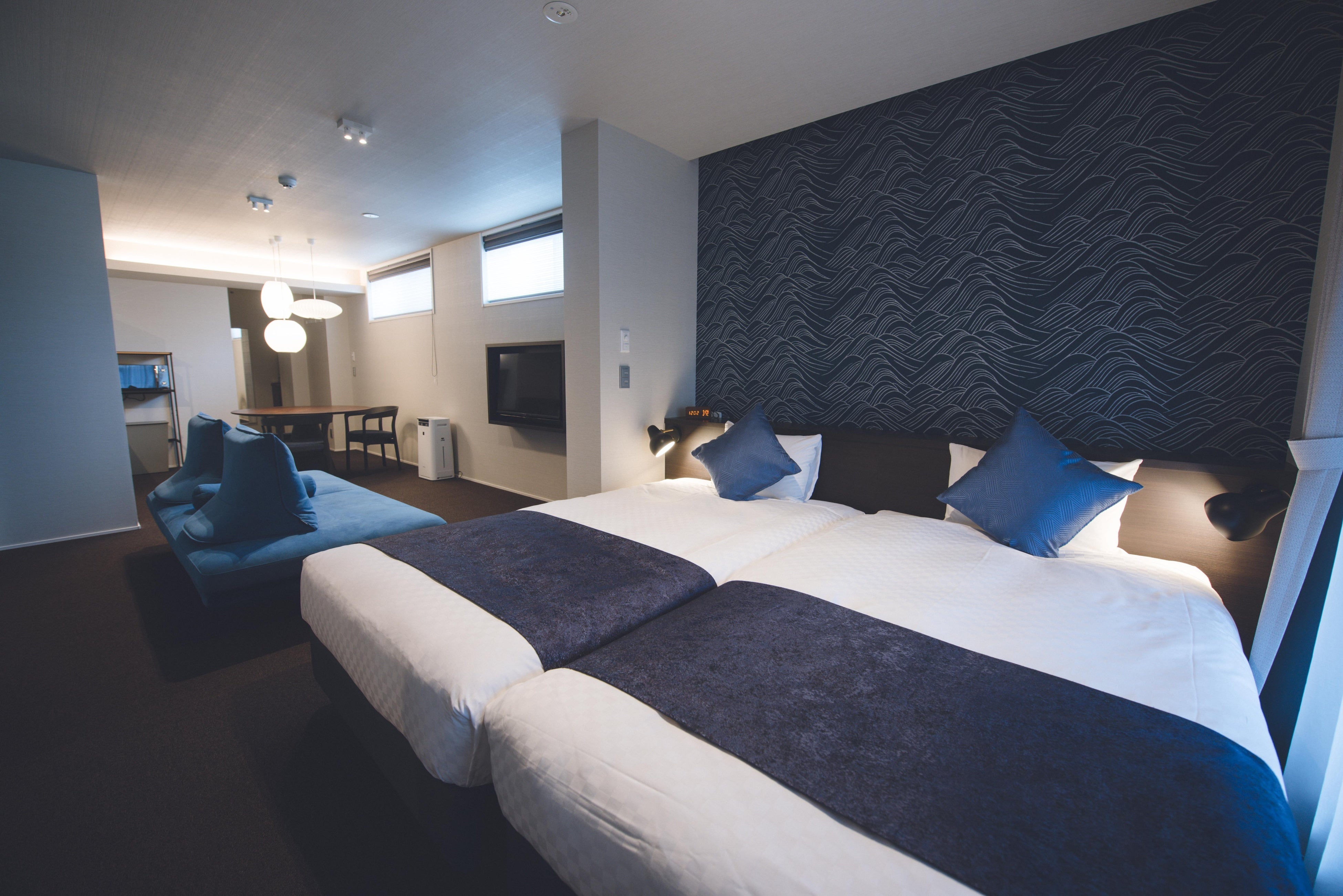 また、すべての客室にキッチン、調理器具、乾燥機付き洗濯機を完備しており、住まうようにお過ごしいただけます。色彩豊かなお部屋とこだわりのインテリアをお楽しみください。