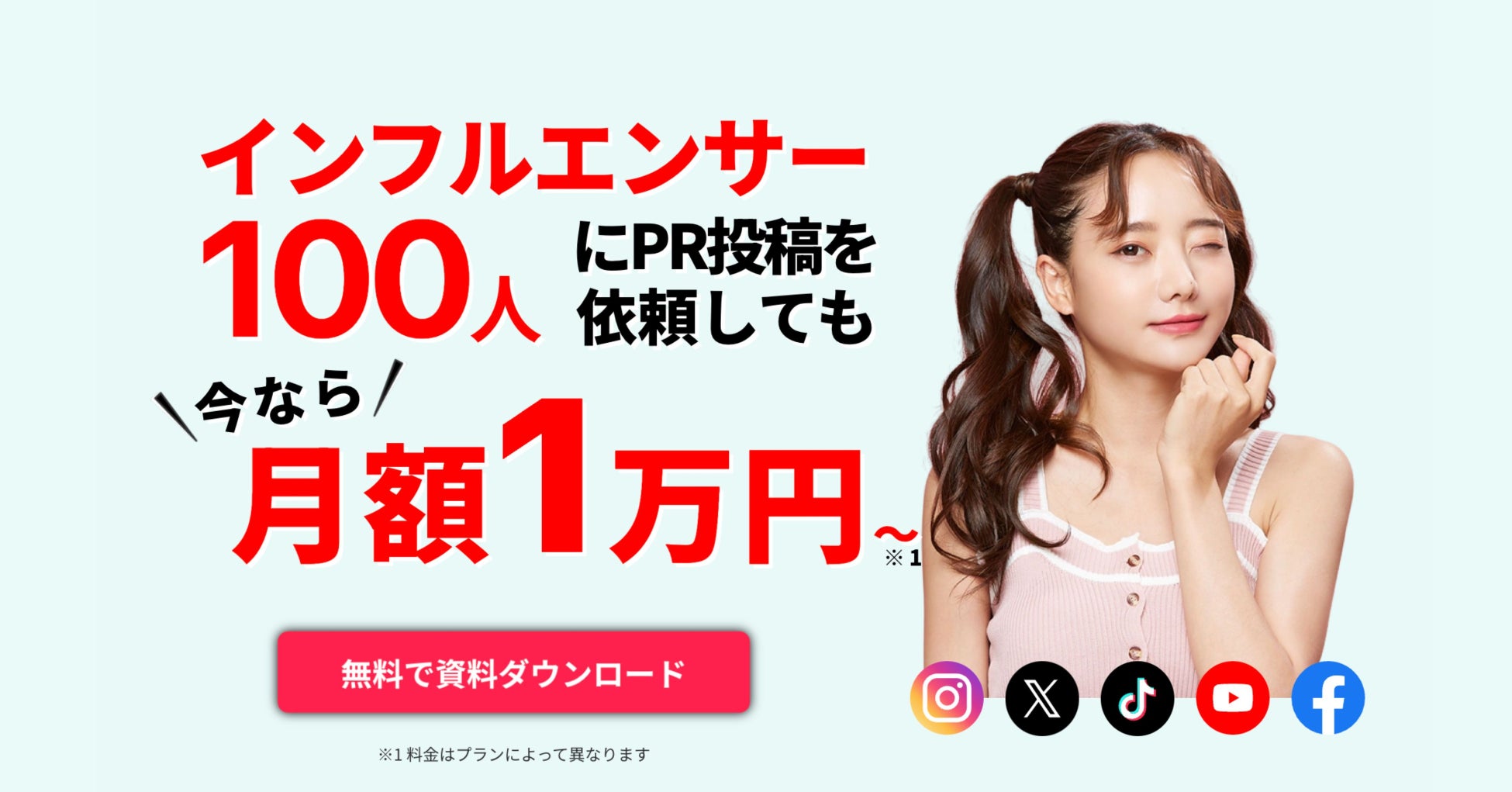 インフルエンサー何名にPR投稿依頼をしても、月額1万円~!