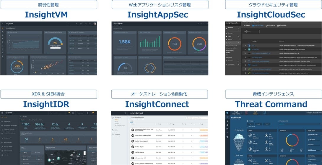「統合型セキュリティプラットフォーム」は、脆弱性管理プラットフォーム「InsightVM」などを含むInsightプラットフォームやペネトレーションテストソフト「Metasploit」、マネージドサービス付帯型ソリューションを統合したソリューションで、エンドポイント・ネットワーク・クラウド環境・アプリケーションを対象に、日々の運用を含めた包括的なセキュリティ対策を実現します。また、東陽テクニカが2017年から国内展開している脅威インテリジェンスプラットフォーム「IntSights」が「Threat Command」として組み込まれており、組織への脅威に対し、評価・検知・対応・自動化の観点から対策を行うことが可能となります。