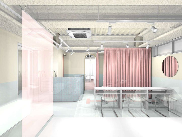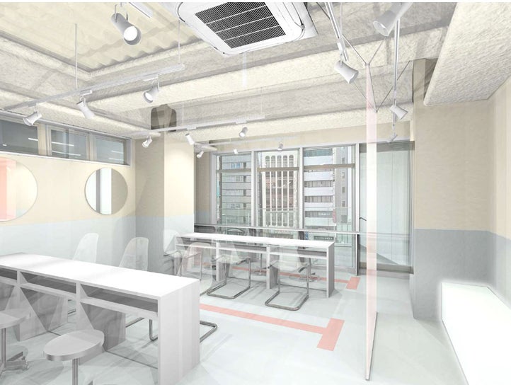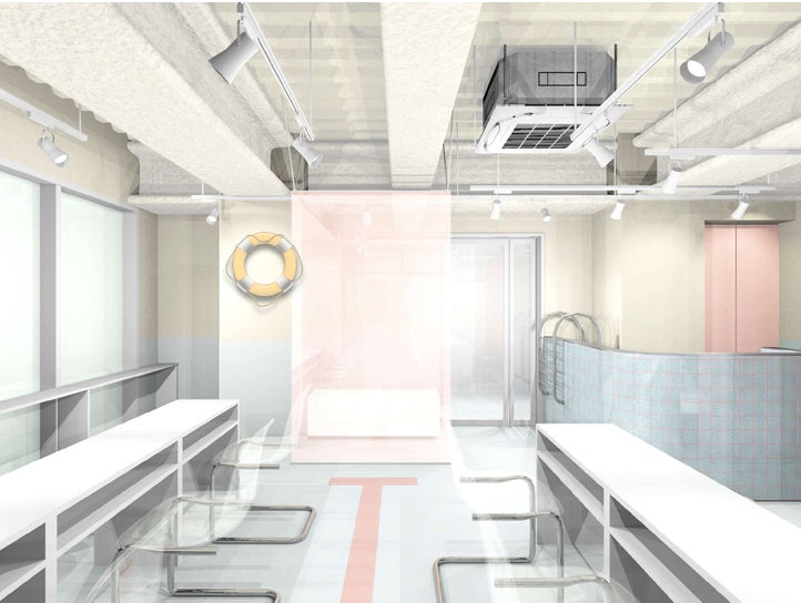大人女子の遊び場をモチーフにプールサイドのようなデザインの世界観を表現。ペールトーンのカラーを基調に可愛いさと遊び心ある空間になっています。