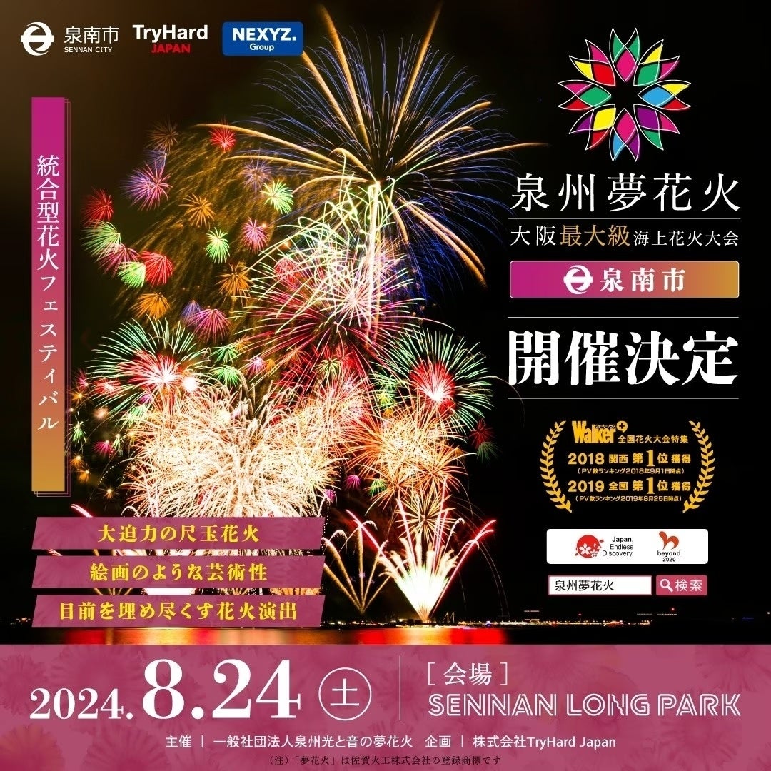 8/24(土)泉州夢花火2024in泉南開催決定!JP Night APPからの購入で専用レーンから入場可能!