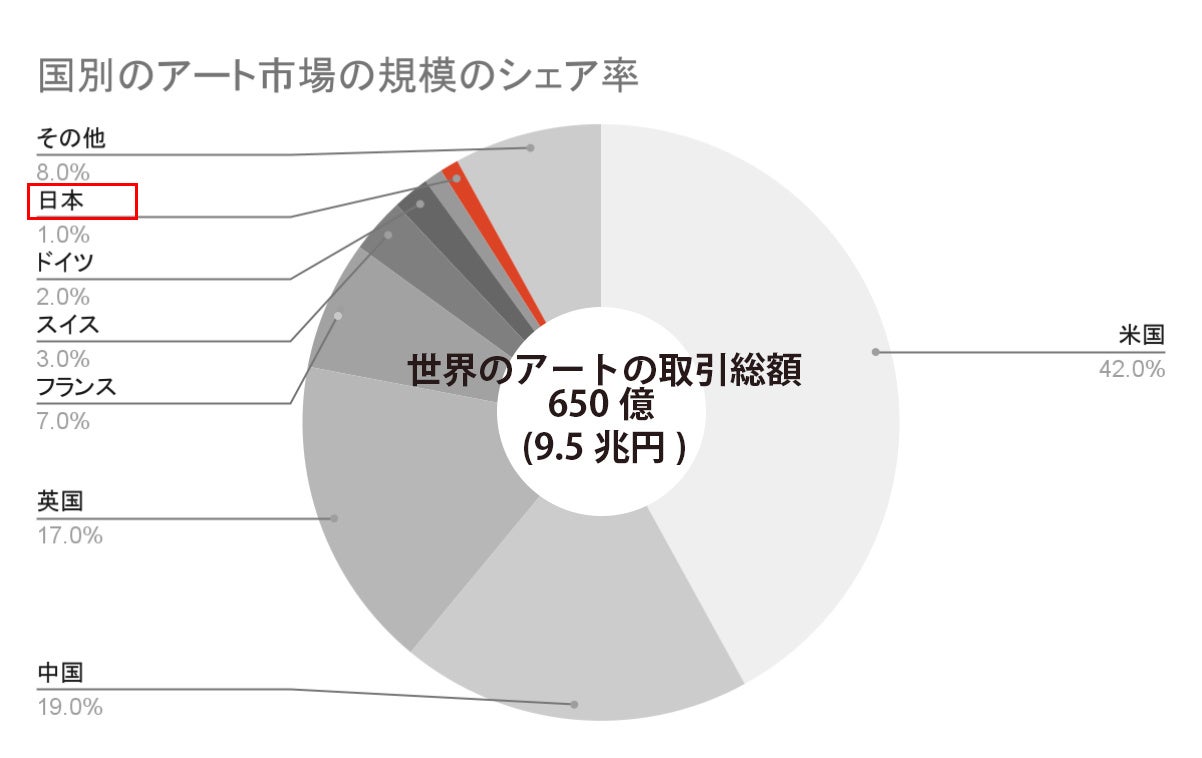 経済規模に対して、アート市場の規模が小さいと言われている日本のアート市場。2024年の世界のアート市場で、日本はわずかの1%で、42%のアメリカ、19%の中国、17%の英国と比較して大きな差があります。(※1)また、世界のトップコレクターとみなされている日本人も限られており、アメリカのアート雑誌「ARTnews」によると、TOP 200 COLLECTORS(2024年10月時点)に選ばれた日本人コレクターはわずか6名しかいません。このため、日本人アーティストが国内で活躍することは難しく、特に若手作家は生活することも厳しくなっているのが現実です。