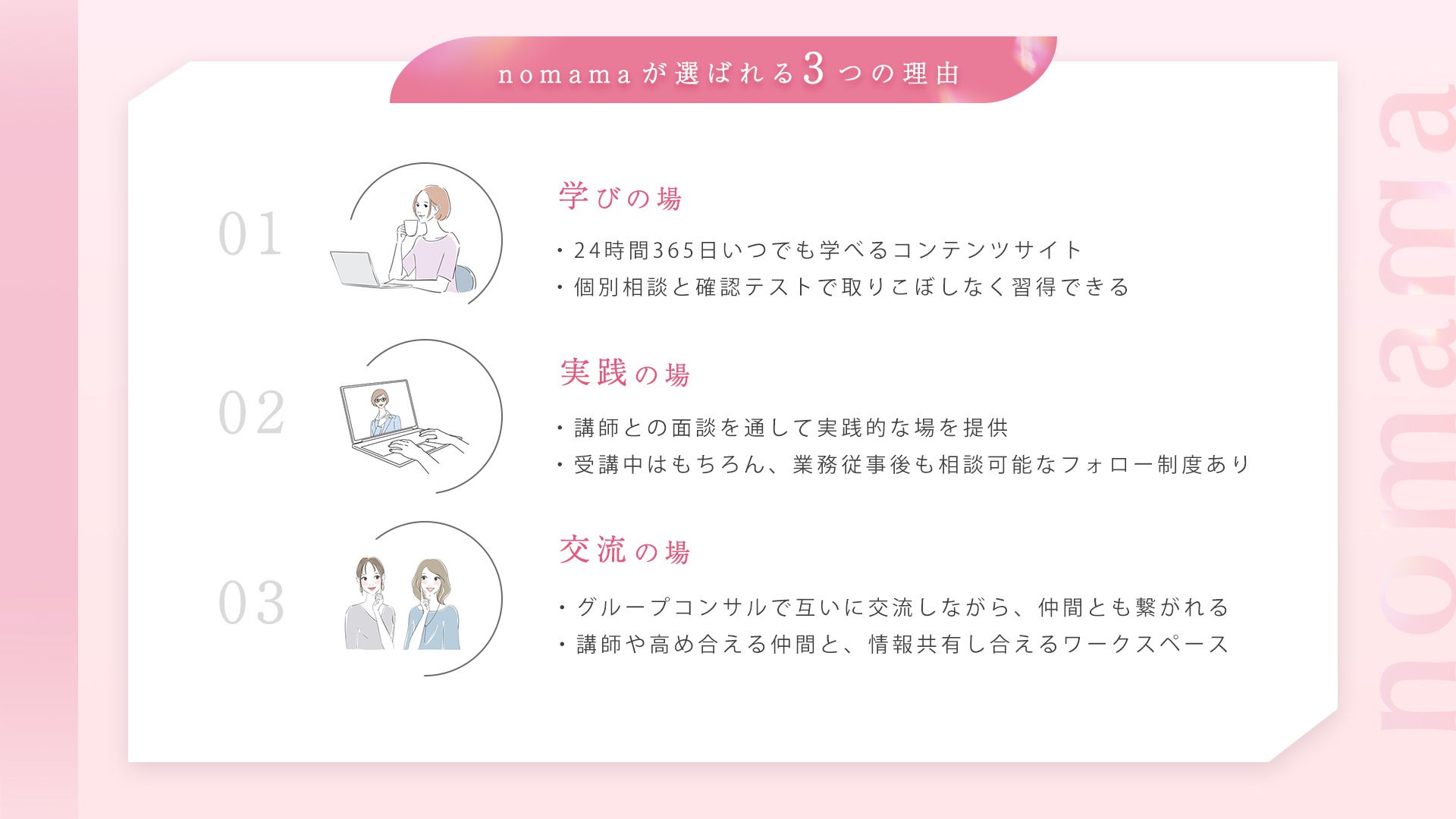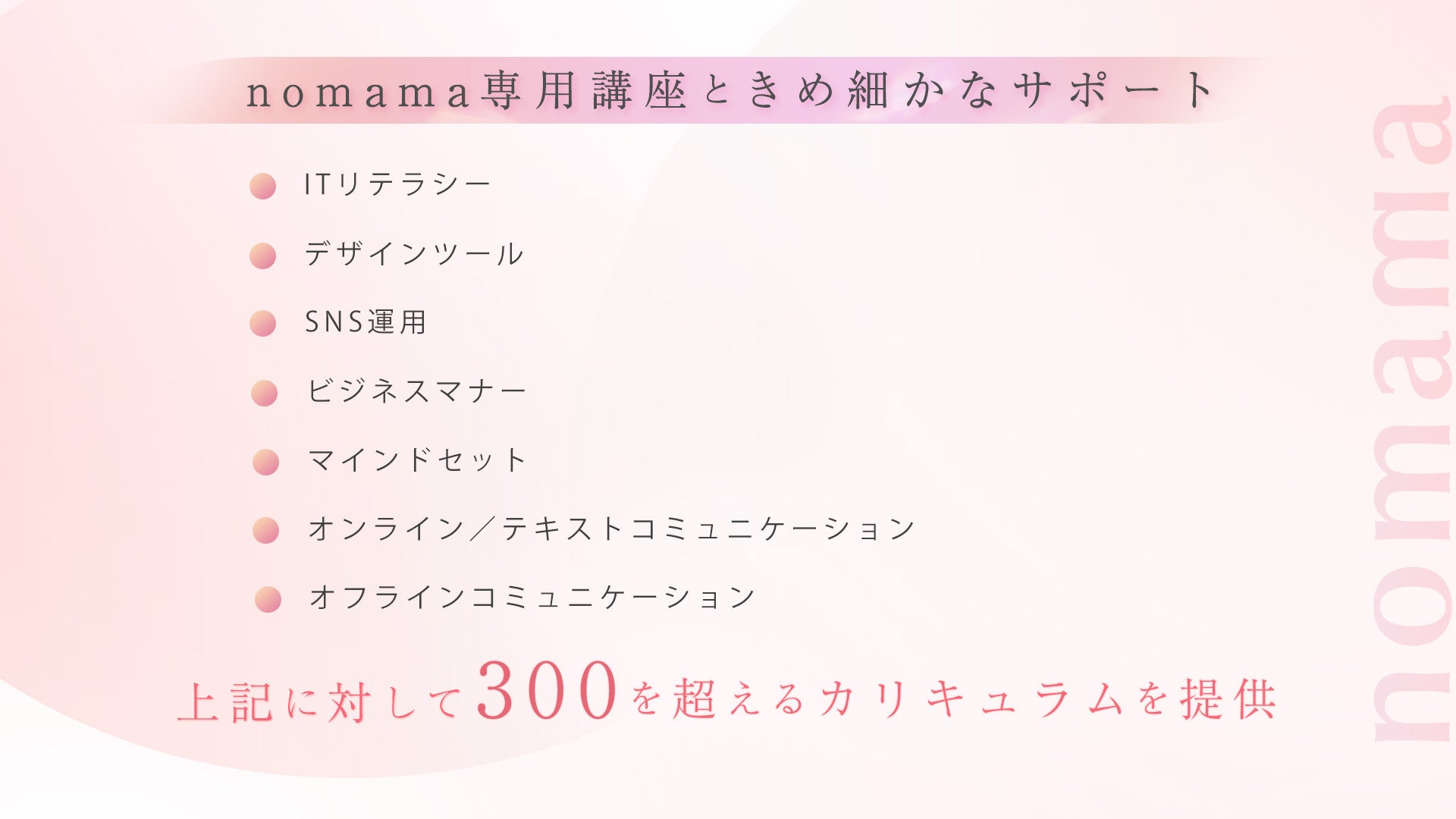 ■nomama専用講座ときめ細かなサポート
