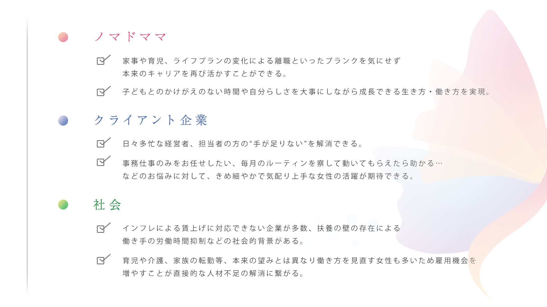 nomamaを通じて人材不足の解決・女性支援を加速させます