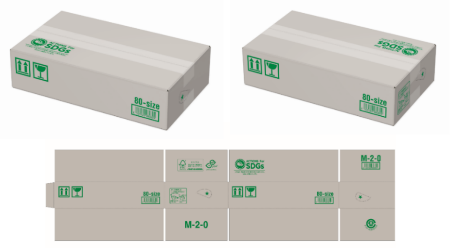 この度、レンゴー社が開発した、SEWという古紙100%でできた原紙が表ライナ部分に使用されている資材へと切り替えることにより、当社の設立当初から持つ配送品質へのこだわりは変えず、環境に配慮された白系の段ボールへと生まれ変わります。また、今回のSEWの資材を使用することをきっかけに、使用頻度の高い形状に集約し、資材コストの適正化にも配慮いたしました。