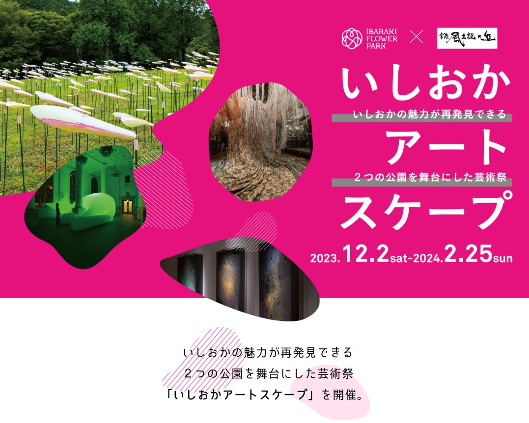 「いしおかアートスケープ」は、2021年に「見るから感じる」体感型の施設としてリニューアルした「いばらきフラワーパーク」、そして古くから常陸国の政治・文化の中心として栄えてきた歴史の里・石岡を体感できる歴史公園「常陸風土記の丘」を舞台にした芸術祭です。