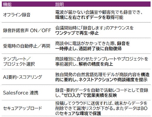 今回リリースした iOS版アプリは、その解析精度を高めるために必要な 「高品質な商談データを簡単・確実に収集する」 機能をスマートフォン上で完結できるようにしたものです。