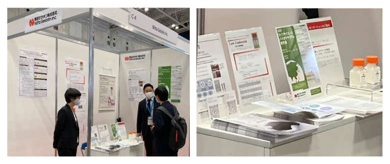 開催期間中には医薬品・医療機器メーカー、政府系研究機関や大学関係者の方々など多数の方に、弊社ブースへご来訪いただき、ゼラチンによるウイルス安定化効果やコラーゲンを用いたヒト細胞培養方法等について特にご関心をいただき、ご説明いたしました。