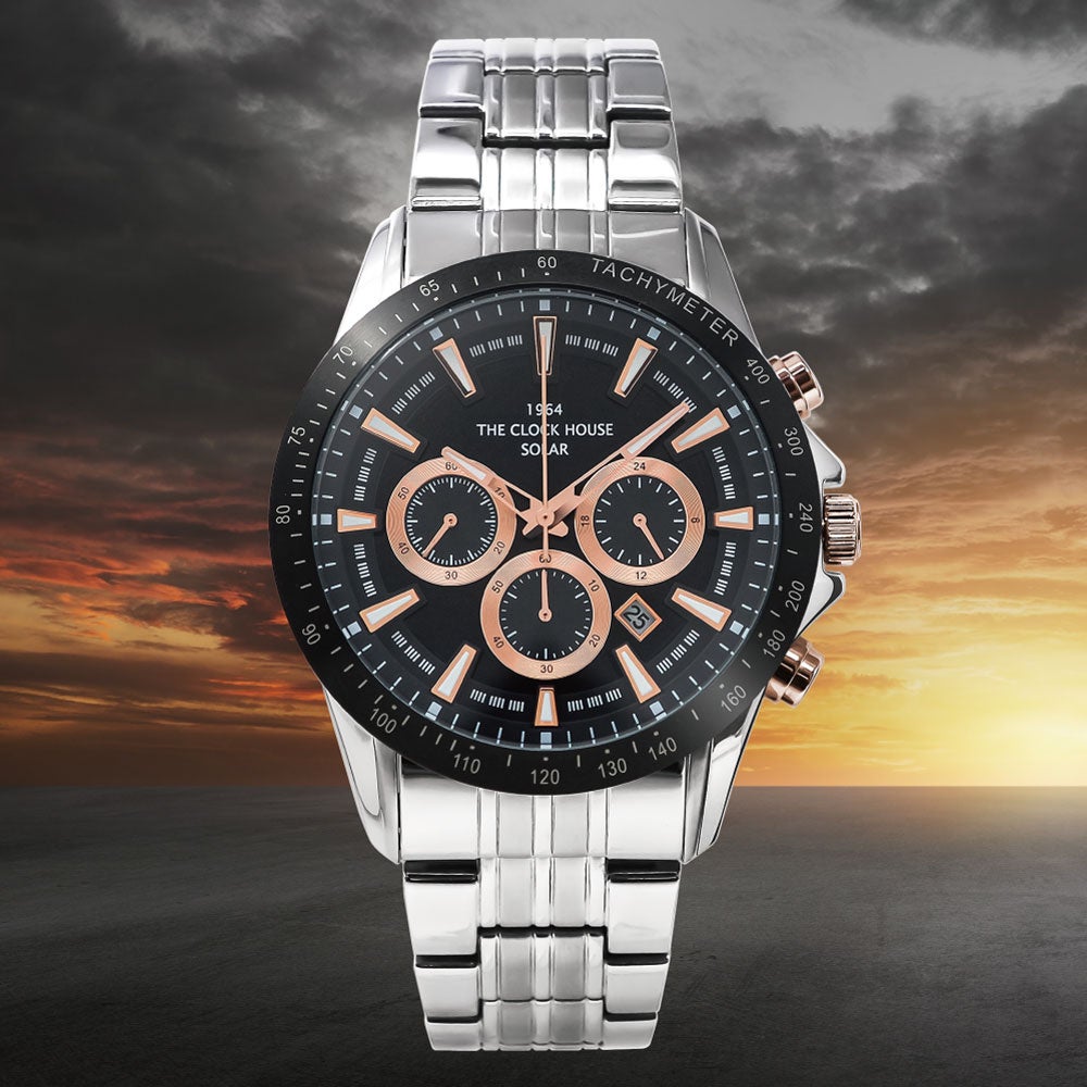 ・電池交換不要のソーラーウォッチ・クロノグラフ機能・10気圧防水・ステンレス製と高スペック