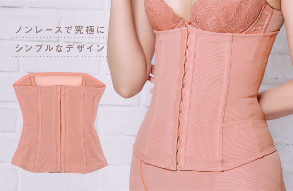 「ととのうコルセット」は、コルセットに対して抱かれることの多い「苦しそう」「暑くてムレそう」「普段使いできなそう」「黒とベージュばかり」のイメージを覆す洗練アイテム。ムレが気になる季節でも快適な着用感を実感できるよう、ソフトタッチのパワーネット素材を使い、ノンレースで究極にシンプルなデザインに仕上げています。