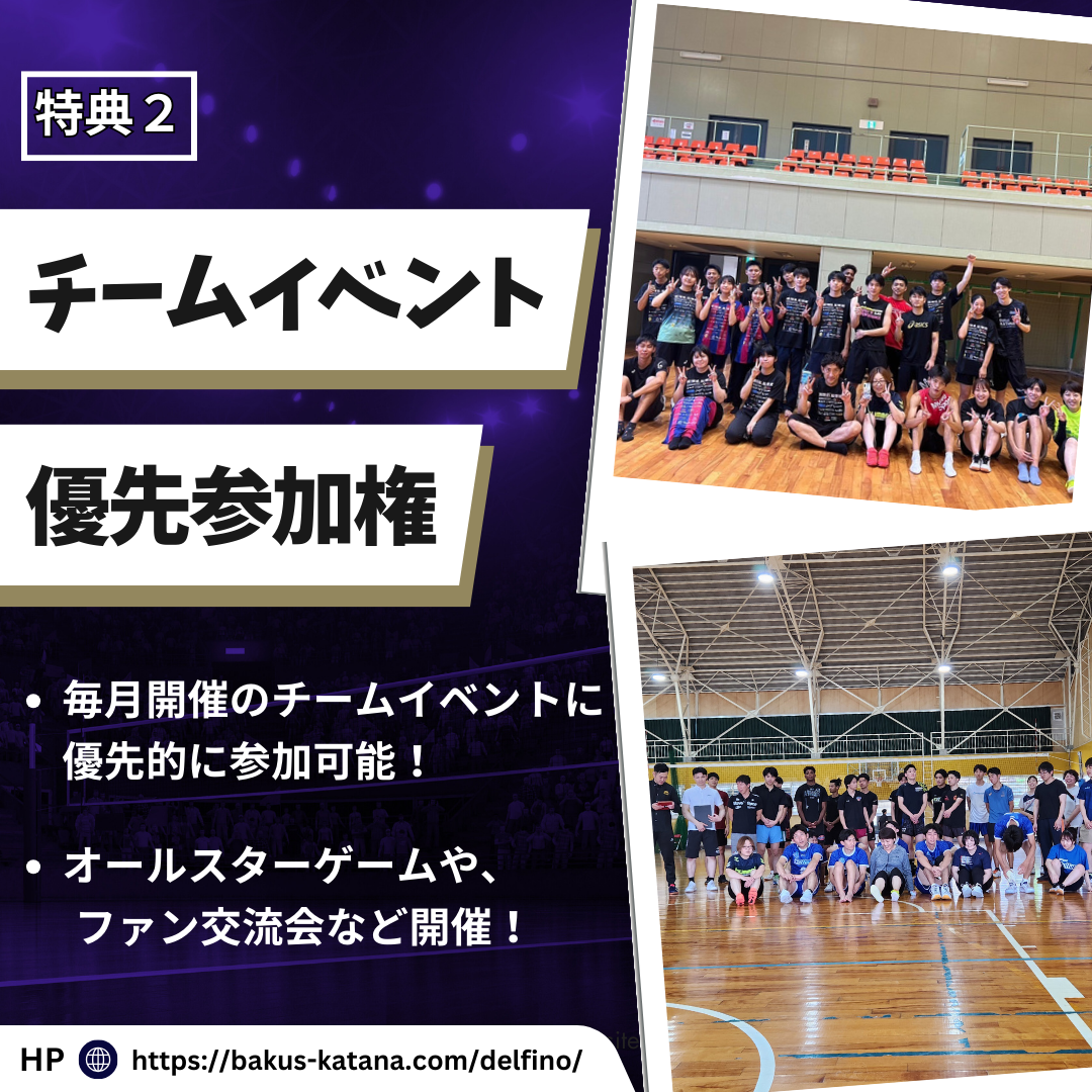 月1回のチームイベントに優先的に参加可能。オールスターゲームのエスコートメンバーや、スタッフ体験など、特別な機会も用意。 -