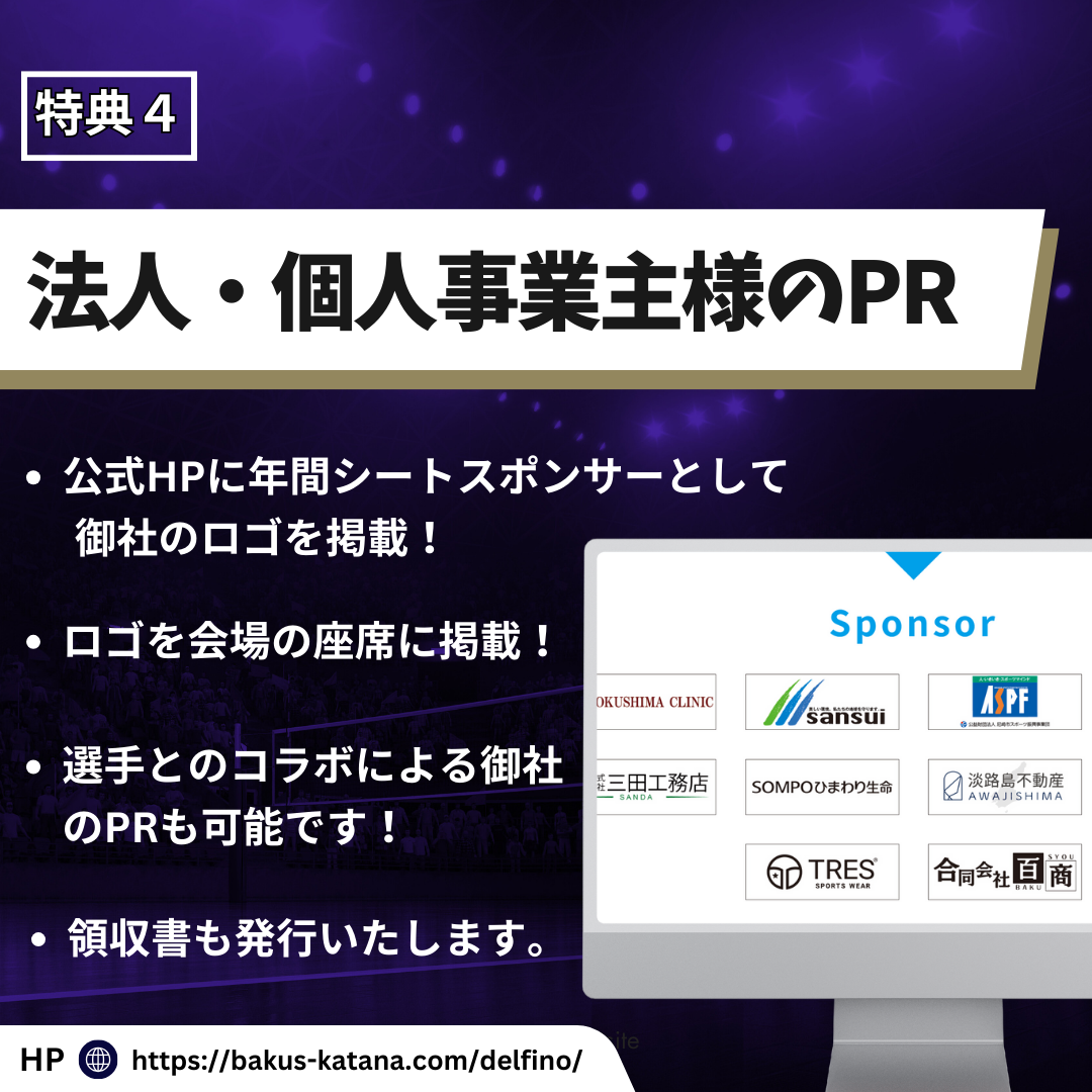 公式サイトや座席にロゴを掲載し、試合を通じた広告宣伝が可能。チームの選手とのコラボPRも実施。 -