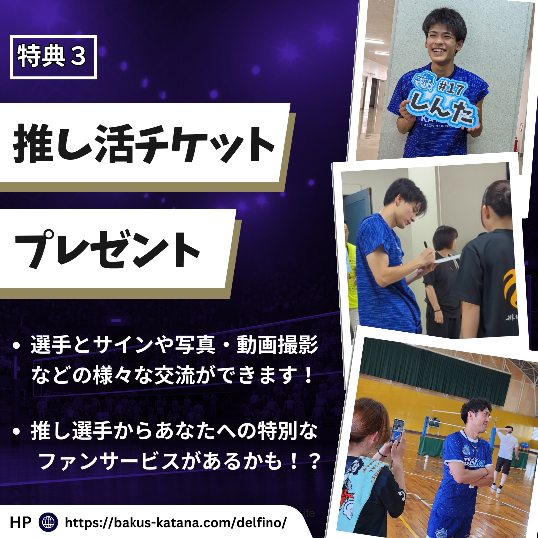 推し選手との写真撮影やサインをもらえる交流機会が確保。さらに特別なファンサービスも期待できるかも! -