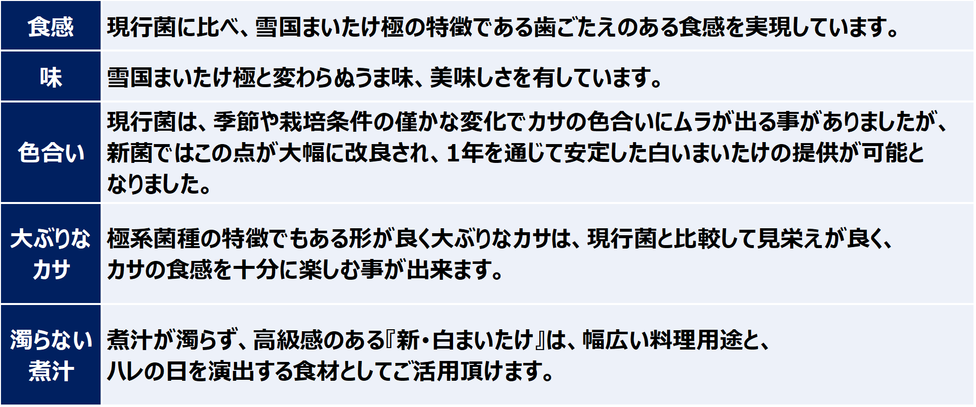 『新・白まいたけ』の特徴
