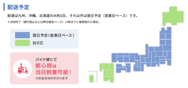 - 到着日数の目安(発送後ベース)