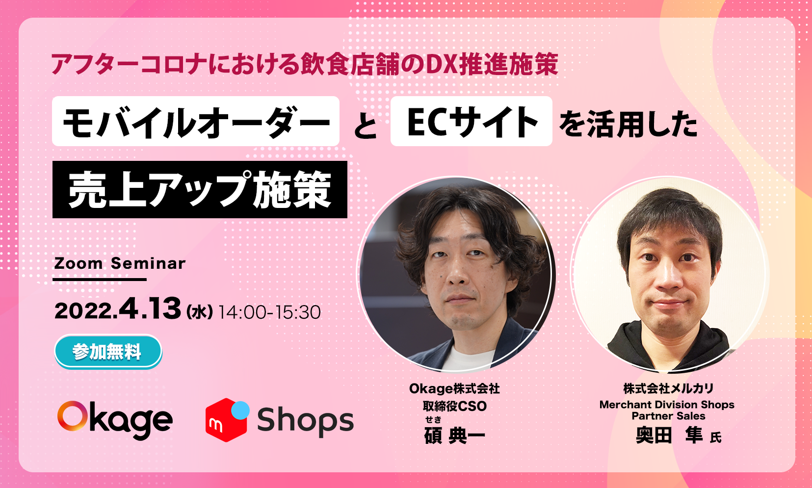 【無料ウェビナー | 4/13(水)14:00-15:30】アフターコロナにおける飲食店舗のDX推進施策~モバイルオーダーとECサイトを活用した売上アップ施策〜