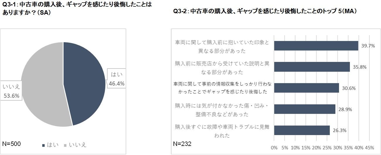 ☑中古車の購入後、ギャップを感じたり後悔した経験を持つ人も半数近くに上った。