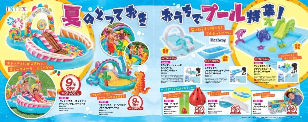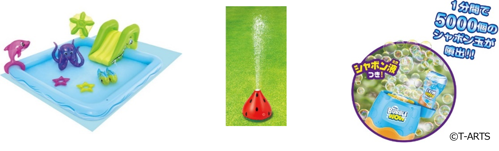 暑い夏も、夏バテも吹き飛ばしておもいっきり遊びを楽しんで欲しい。そんな思いから水遊びアイテムを揃えました。みんなで一緒に入ることができる大型サイズのプールから、プールデビューするお子様におすすめの小型プール、水遊びを更に楽しくするシャワーや水鉄砲、シャボン玉鉄砲など幅広くご用意しています。