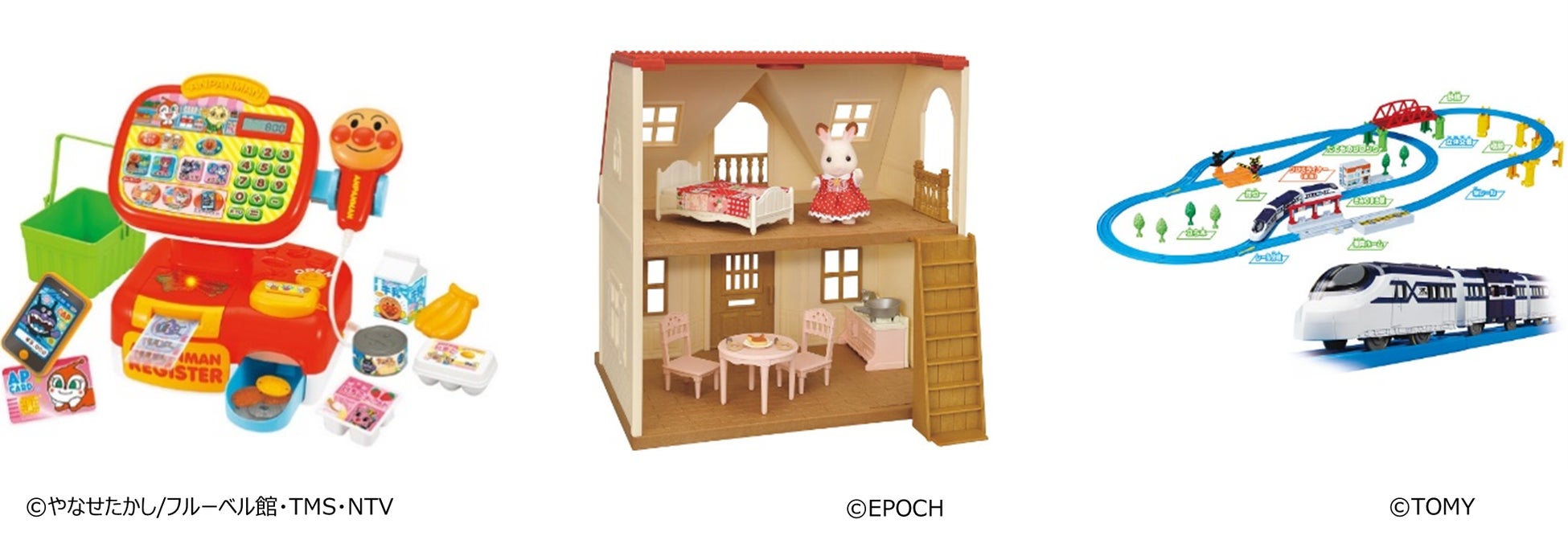 ごっこ遊びやドール、乗り物系玩具、クラフト玩具など、子どもたちに人気の商品を取り揃えました。また、長年に渡り愛されてきた定番玩具で遊べば、祖父母、親世代の懐かしい体験を子どもたちにシェアできるとともに、新しい思い出を作ることもできます。