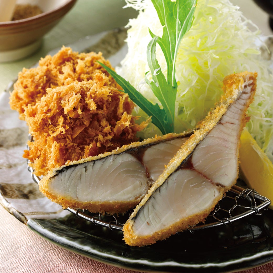 サクサクの衣に包まれた鰆かつは、海の塩気を感じながらも、上品な甘みが特長です。
