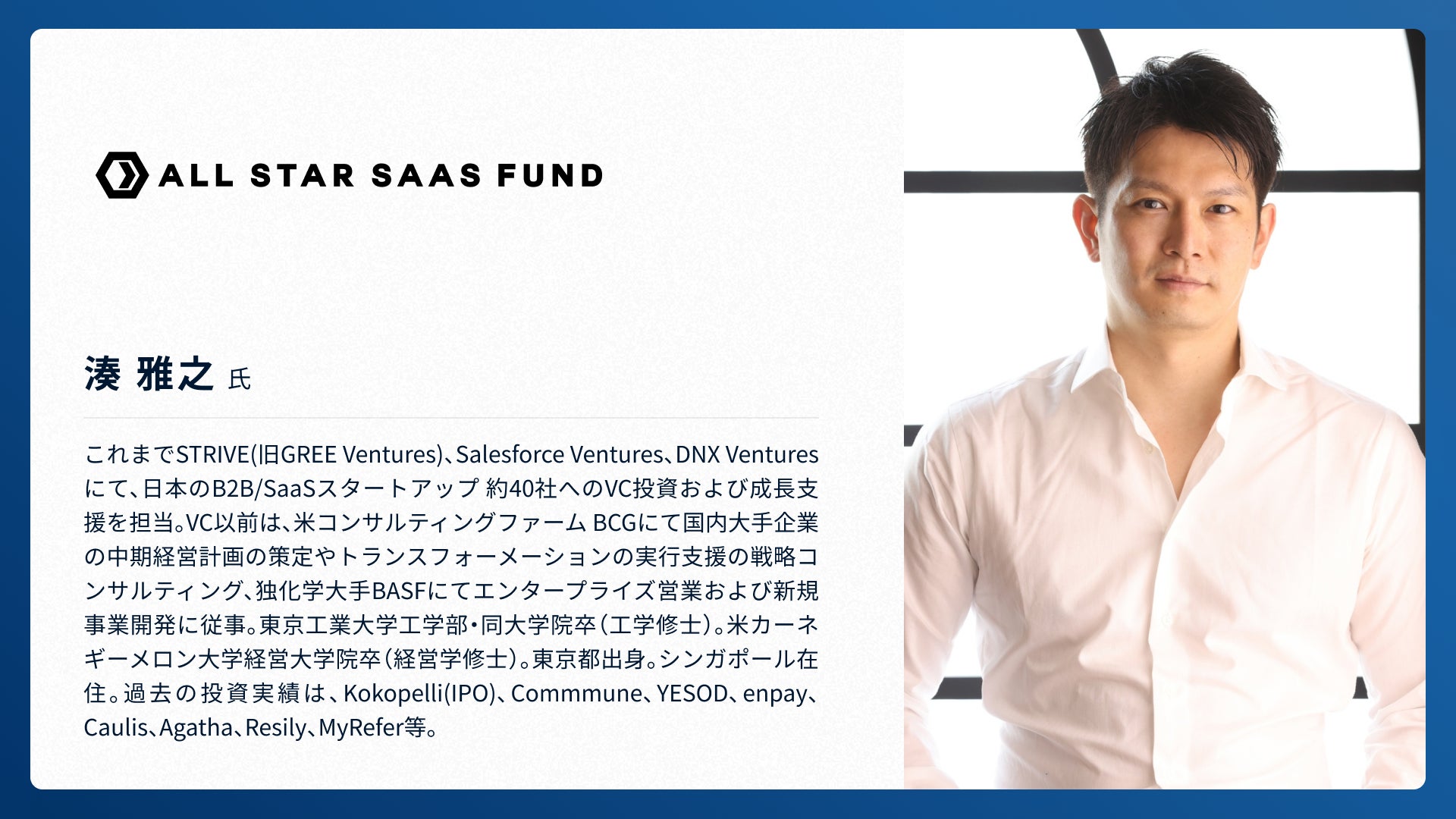 ALL STAR SAAS FUND シニアパートナー 湊 雅之氏